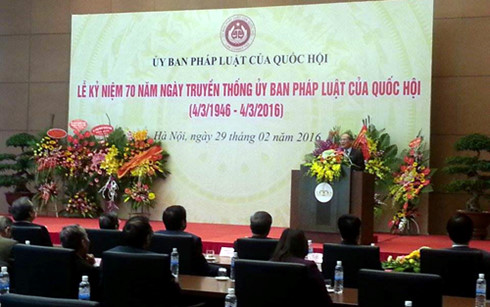 (VOV5) - Chiều nay, tại Nhà Quốc hội, Ủy ban Pháp luật của Quốc hội tổ chức Lễ kỷ niệm 70 năm ngày truyền thống (4/3/1946-4/3/2016).