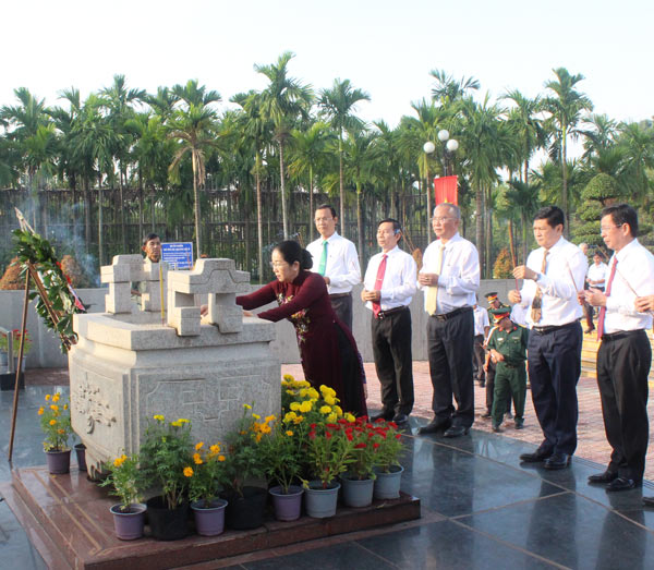 | Đoàn lãnh đạo Thành ủy, HĐND, UBND, Ủy ban MTTQ Việt Nam TPHCM dâng hương tưởng niệm tại Khu tưởng niệm liệt sĩ Ngã Ba Giồng (Ảnh: sggp.org.vn) |