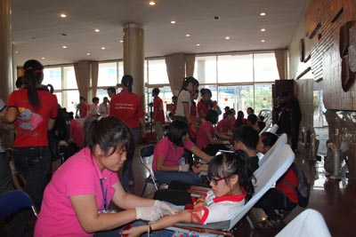 Nhiều bạn học sinh, sinh viên, tình nguyện viên tham gia hiến máu tình nguyện