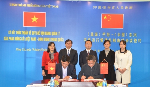 Chiều 19/2, thành phố Móng Cái, tỉnh Quảng Ninh (Việt Nam) và thành phố Đông Hưng, tỉnh Quảng Tây (Trung Quốc) tổ chức lễ ký kết thỏa thuận tạm thời về Quy chế vận hành, quản lý cầu phao Móng Cái (Việt Nam) - Đông Hưng (Trung Quốc).