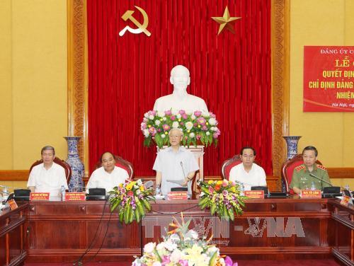 | Tổng Bí thư Nguyễn Phú Trọng phát biểu tại Lễ công bố (Ảnh: TTXVN) |