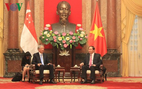(VOV5) - Phát biểu tại buổi tiếp Phó Thủ tướng, Bộ trưởng điều phối an ninh Cộng hòa Singapore Tiêu Chí Hiền, đang có chuyến thăm Việt Nam, diễn ra sáng nay, 12/9, tại Hà Nội, Chủ tịch nước Trần Đại Quang nhấn mạnh, chuyến thăm góp phần thắt chặt quan hệ chính trị nói chung và giữa lãnh đạo hai nước nói riêng, tạo nền tảng vững chắc để quan hệ hai nước phát triển lên tầm cao mới.