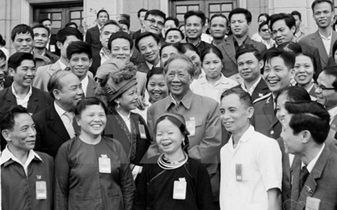 | Tổng Bí thư Lê Duẩn với các đại biểu dự Đại hội Đảng toàn quốc lần thứ V tại Hà Nội (29/3/1982). (Ảnh: Thế Trung/TTXVN) |