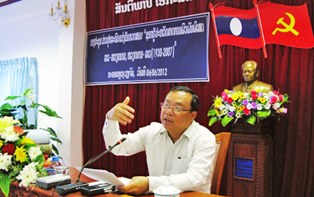(VOV5) - Ông Cheuang Sombounkhan, Bí thư Trung ương Đảng, Trưởng Ban Tuyên huấn Trung ương Đảng NDCM Lào, cho biết Chương trình tổng kết kỷ niệm Năm Đoàn kết Hữu nghị Lào - Việt Nam, Việt Nam - Lào 2012 sẽ được tổ chức trọng thể trong tháng tới.