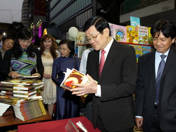 | Chủ tịch nước Trương Tấn Sang và lãnh đạo TP.Hồ Chí Minh dự khai mạc Lễ hội Đường sách của TP.Hồ Chí Minh Tết Giáp Ngọ 2014 (Ảnh:TTXVN) |