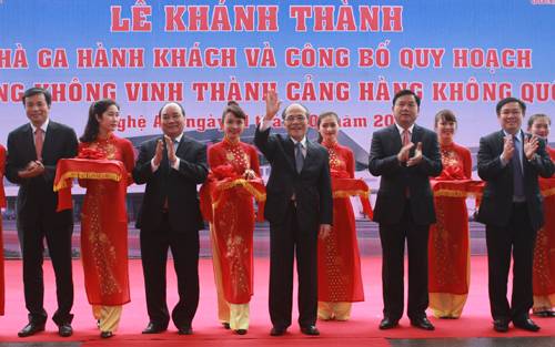 Chiều nay (31/01), tại Cảng hàng không Vinh, Tổng công ty Cảng hàng không Việt Nam phối hợp với Ủy ban nhân dân tỉnh Nghệ An tổ chức Lễ khánh thành Nhà ga hành khách và công bố quy hoạch Cảng hàng không Vinh thành cảng hàng không quốc tế. Dự Lễ khánh thành có Chủ tịch Quốc hội Nguyễn Sinh Hùng, Phó Thủ tướng Nguyễn Xuân Phúc cùng lãnh đạo một số bộ ngành Trung ương và địa phương.