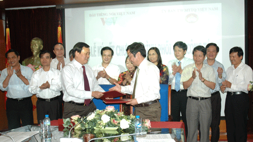(VOV5)- Lễ ký kết chương trình phối hợp công tác giữa Đài TNVN và Ủy ban Trung ương Mặt trận Tổ quốc Việt Nam vừa diễn ra chiều qua (04/07), tại Trung tâm phát thanh Quốc gia, 58 Quán Sứ, Hà Nội.