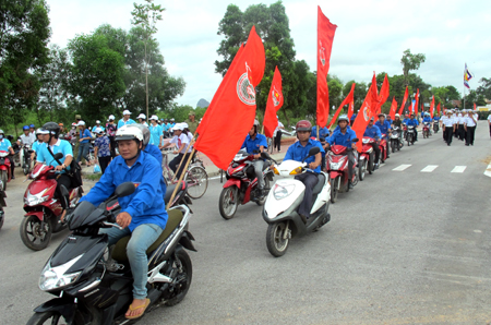 | Đoàn viên thanh niên TX Quảng Yên diễu hành tuyên truyền hưởng ứng Tuần lễ Biển và Hải đảo Việt Nam 2013. (Ảnh:qtv.vn) |