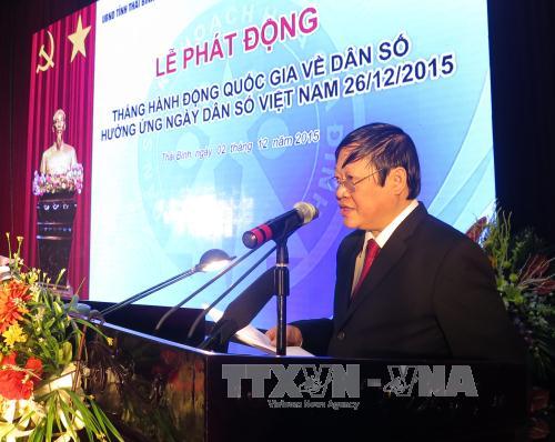 (VOV5) - Ngày 2/12, tại thành phố Thái Bình (tỉnh Thái Bình), Bộ Y tế tổ chức Lễ phát động Tháng hành động quốc gia về Dân số và hưởng ứng Ngày Dân số Việt Nam năm 2015 (26/12) với chủ đề: “Cộng đồng chung tay chăm sóc người cao tuổi”.