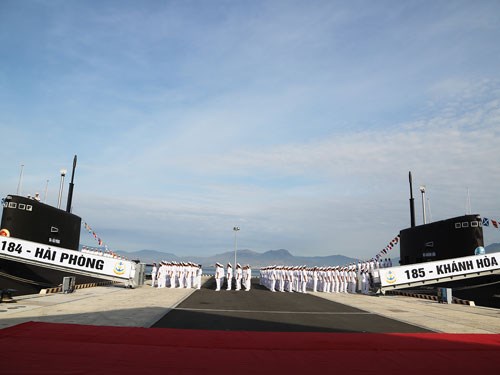 Sáng nay, 1/8, tại Quân cảng Cam Ranh, Quân chủng Hải quân đã long trọng tổ chức Lễ thượng cờ cho hai tàu ngầm 184 - Hải Phòng và 185 - Khánh Hòa. Đây là hai tàu ngầm thứ 3 và thứ 4 trong sêri 6 tàu ngầm Việt Nam đặt mua của Liên bang Nga, do Nhà máy đóng tàu Admiraltei Verfi sản xuất và đã bàn giao cho Việt Nam 4 chiếc.