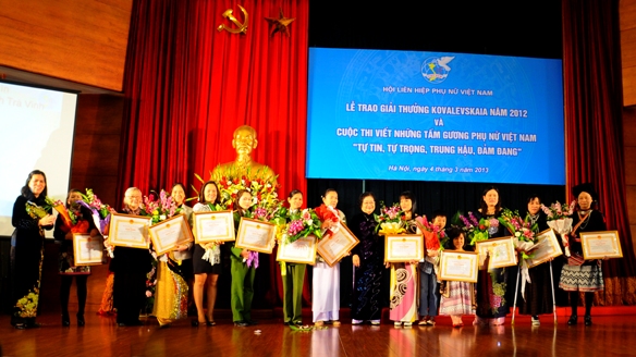 Cùng với lễ trao giải Kovalevskaia, Trung ương Hội Liên hiệp Phụ nữ Việt Nam còn trao giải cho “Cuộc thi viết về những tấm gương phụ nữ Việt Nam tự tin – tự trọng – trung hậu – đảm đang” và phát động Ngày Phụ nữ Việt Nam sáng tạo năm 2013. Bà Nguyễn Thị Thanh Hòa, Chủ tịch Hội liên hiệp phụ nữ Việt Nam, cho biết:“ Chúng tôi đang phát động thi đua tiết kiệm giúp nhau giảm nghèo bền vững, vận động mỗi chị một tháng tiết kiệm ít nhất 5 nghìn đồng, giao chỉ tiêu cho từng tỉnh. Làm tốt đợt thi đua này thì trong năm nay phụ nữ cả nước sẽ tiết kiệm được nghìn tỷ đồng và tiết kiệm để làm vốn cho chị em vay để phát triển sản xuất. Chúng tôi cũng tạo điều kiện cho chị em được tập huấn, bồi dưỡng những kiến thức về gia đình, nuôi dạy con và sản xuất kinh doanh.”