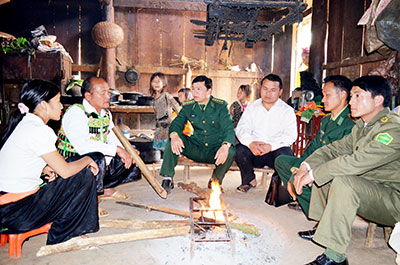 | Cán bộ, chiến sỹ Bộ đội Biên phòng phối hợp với lực lượng chức năng tuyên truyền pháp luật cho người dân các xã biên giới. Ảnh minh họa: baosonla.org.vn. |