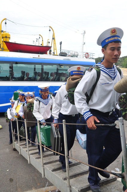 Cũng tại quân cảng Cam Ranh diễn ra lễ xuất quân đưa các cán bộ chiến sỹ ra công tác tại quần đảo Trường Sa. Với nhiều chiến sỹ, đây là lần đầu tiên ra công tác tại quần đảo Trường Sa nhưng đều khẳng định quyết tâm hoàn thành xuất sắc nhiệm vụ bảo vệ chủ quyền biển, đảo quê hương để không phụ niềm tin mà Tổ quốc giao phó. Chiến sỹ Hồ Văn Hiếu, ra công tác tại đảo Sinh Tồn, cho biết được ra công tác tại quần đảo Trường Sa là niềm vui và hạnh phúc của bản thân: “Phấn khởi, nôn nao là cảm giác của tôi khi được ra đảo hôm nay để thay thế cho các anh đã và đang canh giữ biển đảo nước nhà. Tôi xin hứa vượt mọi gian khổ để vượt mọi gian khổ, hoàn thành nhiệm vụ được Tổ quốc giao phó".