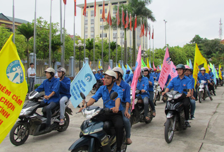 | Lực lượng thanh niên tham gia diễu hành hưởng ứng Ngày Dân số thế giới 11/7. (Ảnh: KTDT) |