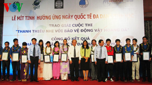 (VOV5)- Sáng nay, tại Hà Nội, Bộ Tài nguyên và Môi trường, Trung ương Hội liên hiệp thanh niên Việt Nam phối hợp tổ chức Lễ mít tinh hưởng ứng Ngày quốc tế đa dạng sinh học, trao giải cuộc thi “Thanh thiếu nhi với bảo vệ động vật hoang dã” và công bố kết quả “Khảo sát nhận thức về đa dạng sinh học”. Các hoạt động này nhằm hưởng ứng Ngày quốc tế đa dạng sinh học 22-05.