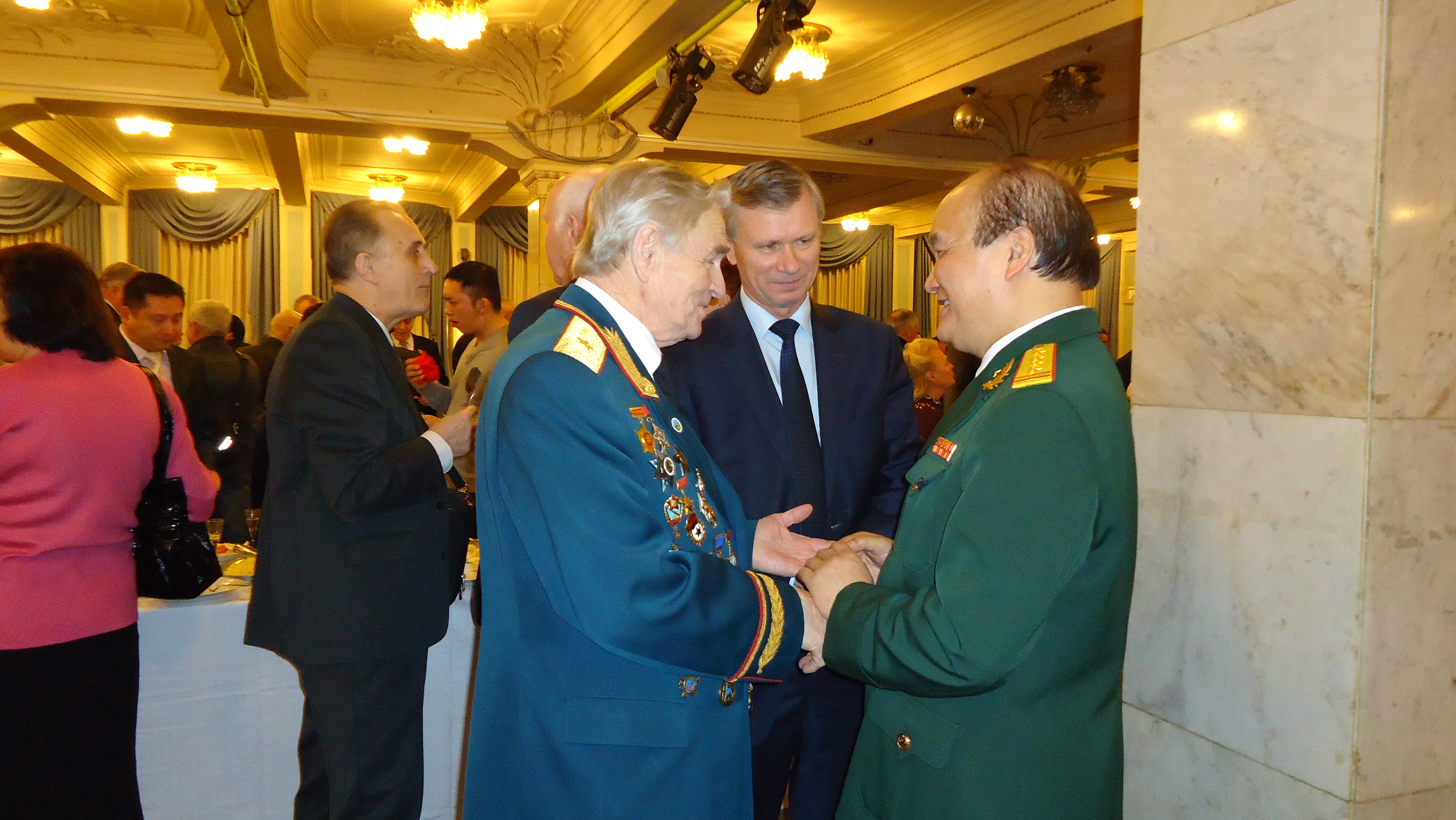 Đại sứ đặc mệnh toàn quyền Việt Nam tại LB Nga Phạm Xuân Sơn có bài phát biểu nêu bật ý nghĩa lịch sử của chiến thắng Điện Biên Phủ trên không oai hùng và không quên khẳng định công lao, cũng như bày tỏ lòng biết ơn những người đồng chí, anh em Xô-viết, những người bạn chân tình của nhân dân Việt Nam. Đại sứ Phạm Xuân Sơn nhấn mạnh: “Nhớ lại những năm tháng chiến tranh đau thương, gian khổ và thắng lợi vẻ vang, tự hào về những thành tựu và đổi thay tốt đẹp của ngày hôm nay, tin tưởng vào tương lai tươi sáng của đất nước, nhân dân Việt Nam từ thế hệ này đến thế hệ khác mãi mãi biết ơn Liên Xô và LB Nga, trong đó có các cựu cố vấn và chuyên gia – những người với tinh thần của Chủ nghĩa quốc tế trong sáng đã không tiếc tuổi xuân, không sợ hy sinh, gian khổ… đã chiến đầu và không ít trong số họ đã hy sinh vì độc lập tự do của dân tộc Việt Nam như của chính dân tộc mình”.