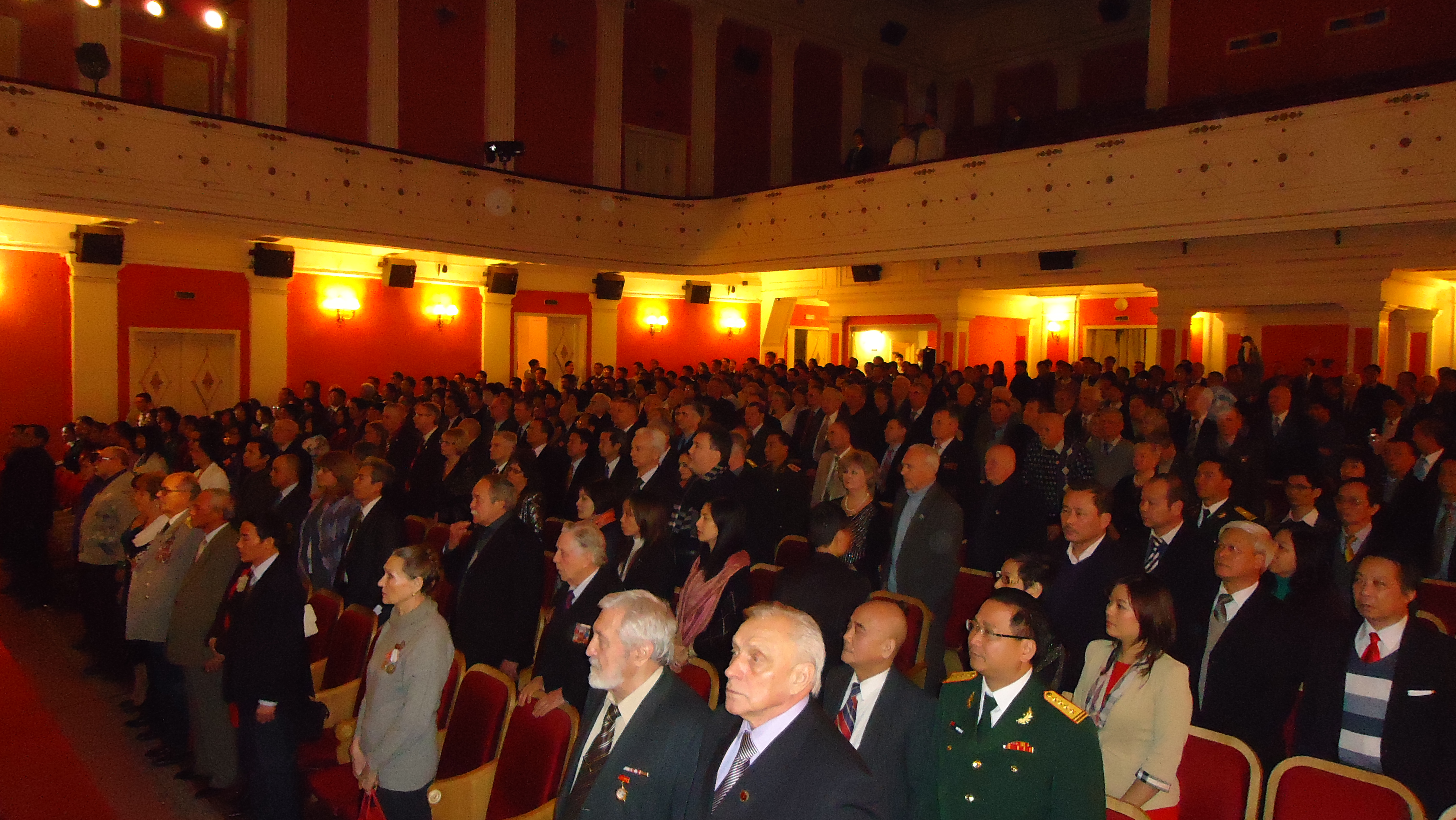 Cuộc mit-tinh như một cuộc hội ngộ, một cuộc tri ân giữa những người bạn Việt – Nga. Sân khấu chính của Nhà Văn hóa Trường đại học Giao thông Mat-xcơ-va được trang trí sống động với tấm phông tái hiện hình ảnh Bác Hồ cùng Đại tướng Võ Nguyên Giáp tới thăm trận địa tên lửa sau một trận đánh. Trước khi bắt đầu buổi lễ, các đại biểu đã cùng xem lại những thước phim tư liệu ghi lại những tháng ngày gian khổ của quân và dân Việt Nam trong cuộc chiến đấu chống máy bay Mỹ trên bầu trời Hà Nội và các tỉnh phía Bắc Việt Nam; ghi lại những hình ảnh các chuyên gia quân sự Liên Xô và Nga sát cánh cùng nhân dân Việt Nam đánh máy bay Mỹ và những hồi ức của họ khi đất nước Việt Nam đã hòa bình và đi lên xây dựng CNXH.