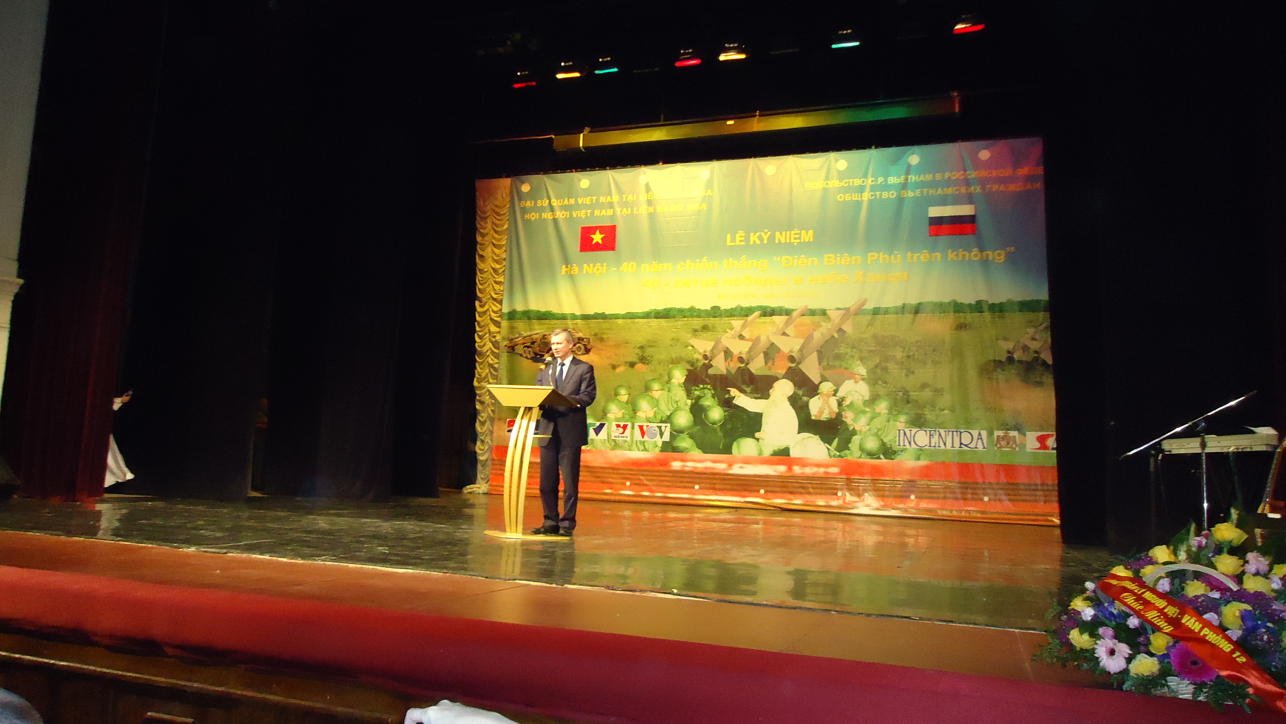 Các đại biểu tham dự buổi mít tinh là các cựu chiến binh Nga và Việt Nam, là các cán bộ, nhân viên Đại sứ quán Việt Nam tại LB Nga cùng đại diện các hội, đoàn thể của người Việt tại LB Nga và của Nga hữu nghị với Việt Nam, đặc biệt là thế hệ trẻ, thế hệ sinh ra sau chiến tranh, những sinh viên Việt Nam hiện đang theo học tại các trường Đại học ở Nga… Họ đã cùng nghe những bài phát biểu rất trang trọng, đầy tình cảm của Chủ tịch Hội hữu nghị Nga – Việt Bu-a-nôv, của Chủ tịch Hội Cựu chiến binh Nga từng công tác tại Việt Nam Kô-le-snic và đặc biệt là bài nói chuyện của Thượng tướng Khiu-pê-nen. Họ đã ôn lại những kỷ niệm về cuộc chiến đấu chống Mỹ trên bầu trời Việt Nam. Họ đã một lần nữa đánh giá cao tinh thần chiến đấu, hy sinh cao cả của dân tộc Việt Nam, đánh giá cao ý nghĩa của chiến thắng đối với lịch sử của nhân dân Việt Nam và họ lại một lần nữa gửi lời chúc mừng chân thành tới nhân dân Việt Nam. Trong câu chuyện của mình, Thượng tướng Khiu-pê-nen, người có mặt tại Việt Nam đúng những ngày đêm lịch sử của Hà Nội năm 1972 với tư cách Trưởng đoàn chuyên gia quân sự Liên Xô, nhấn mạnh: “Lực lượng tên lửa đã làm nên không chỉ chiến thắng quân sự, mà đó là một chiến thắng lịch sử. Chiến thắng Điện Biên phủ trên không đã mở đường đi đến thống nhất đất nước Việt Nam. Thật đúng khi gọi đó là “Điện Biên Phủ” bởi với chiến thắng Điện Biên phủ năm 1954, Việt Nam đã giành được độc lập hoàn toàn từ tay người Pháp, còn với chiến thắng của Điện Biên phủ trên không Việt Nam đã tiến dần tới thắng lợi cuối cùng. Và cũng bởi thế có thể gọi, “Điện Biên Phủ trên không” là Sta-lin-grat của Việt Nam”.