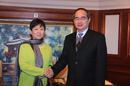Thay mặt Đảng, Nhà nước Việt Nam, Ủy viên Bộ Chính trị, Chủ tịch Ủy ban trung ương Mặt trận Tổ quốc Việt Nam Nguyễn Thiện Nhân trân trọng gửi lời thăm hỏi tới các nhà lãnh đạo Trung Quốc nhân dịp này. Chủ tịch Nguyễn Thiện Nhân cũng đánh giá cao sáng kiến đề xuất của Hội hữu nghị hai nước tổ chức mở tuyến du lịch qua các địa danh mà Chủ tịch Hồ Chí Minh đã từng sống ở Trung Quốc trong năm nay với tên gọi “Du lịch đỏ theo dấu chân Chủ tịch Hồ Chí Minh”, nhằm giáo dục thế hệ trẻ hai nước về truyền thống hợp tác hữu nghị giữa hai dân tộc Việt-Trung./.