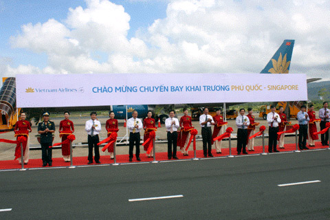 (VOV5) - Ngày 2/11, Ủy ban nhân dân tỉnh Kiên Giang phối hợp với Tổng Công ty Hàng không Việt Nam và Công ty Cổ phần Vinpearl tổ chức lễ khai khai trương đường bay mới Phú Quốc - Singapore.