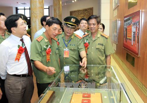 | Thượng tướng Trần Việt Tân, Thứ trưởng Bộ Công an, Thứ trưởng Bộ Văn hóa, Thể thao và Du lịch Vương Duy Biên và các đại biểu tham quan bảo tàng. Ảnh: An Đăng - TTXVN |