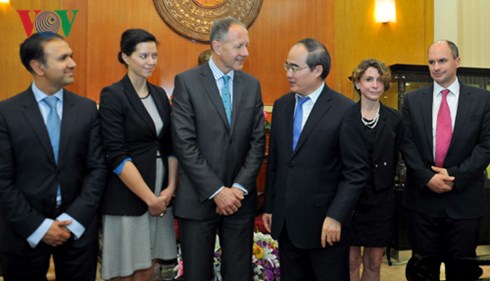 | Ông Nguyễn Thiện Nhân tiếp đoàn Tổ chức Facing the World (Ảnh: vov.vn) |