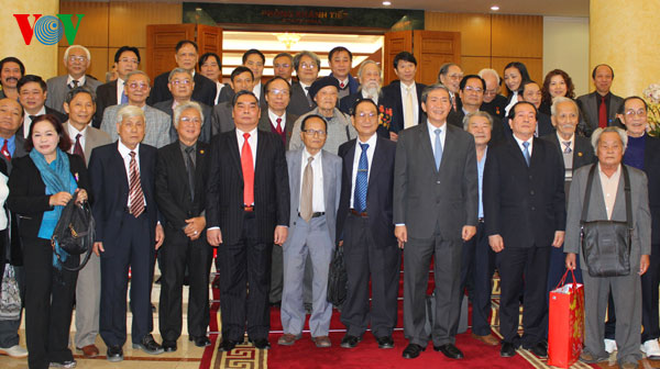 Ông Lê Hồng Anh và các văn nghệ sĩ tại buổi họp mặt