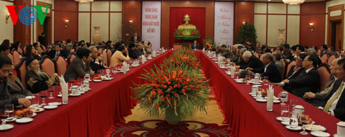 (VOV5)- Ngày 5/2, phát biểu tại buổi chúc Tết các văn nghệ sĩ trong nước nhân dịp năm mới, ông Lê Hồng Anh, Ủy viên Bộ Chính trị, Thường trực Ban Bí thư khẳng định Đảng, Nhà nước và nhân dân đánh giá cao những đóng góp to lớn của đội ngũ văn nghệ sĩ, các nhà văn hóa cho nền văn hóa, văn học, nghệ thuật nước nhà và sự nghiệp cách mạng của dân tộc.