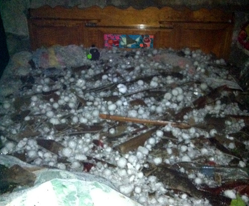 Mưa đá xuất hiện tại 3 huyện Mường Khương, Bắc Hà và Si Ma Cai, với những viên to bằng nắm tay, có viên to bằng chiếc bát ăn cơm, nên đã làm thủng mái rất nhiều nhà dân.