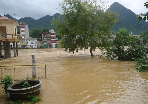 | Nước sông Lô đã tràn vào các hộ dân ven sông thuộc thành phố Hà Giang. Ảnh:KTTV Hà Giang. |