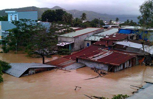| Nước lũ dâng cao tận nóc nhà ở khu vực Diêu Trì. (Ảnh: VNexpress) |