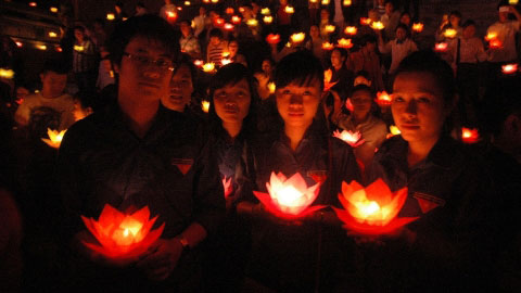 Đèn hoa đăng cầu siêu cho các nạn nhân thiệt mạng vì tai nạn giao thông. Ảnh: baophutho.vn