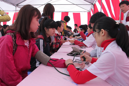 | Thanh niên tham gia hiến máu tại Ngày hội tình nguyện Quốc gia 2014. Ảnh: Minh Châu |