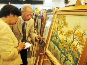 | Tranh sơn dầu về đất nước, con người Nhật Bản của họa sỹ Trần Quân Ngọc (Ảnh: Vietnam+) |