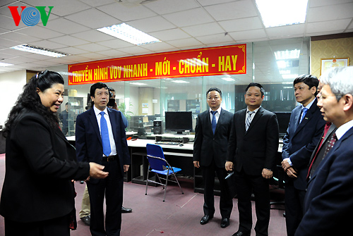| Phó Chủ tịch Quốc hội Tòng Thị Phóng tới thăm nơi làm việc của các cán bộ, phóng viên Kênh truyền hình VOV (Ảnh minh họa: Huy Phương) |