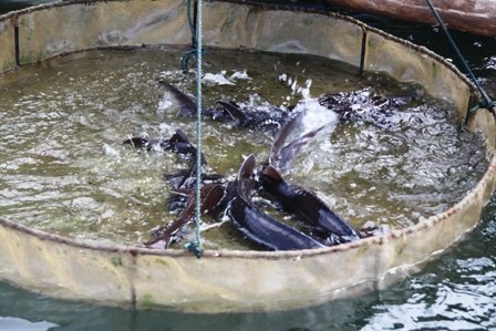 | Nuôi cá tầm trên hồ thủy điện Sơn La. |