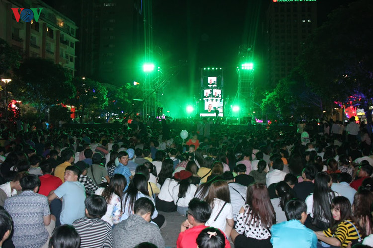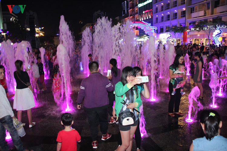| Tại TP Hồ Chí Minh, đông đảo người dân và du khách đổ về phố đi bộ Nguyễn Huệ, quận 1. Ảnh: Vinh Quang |
