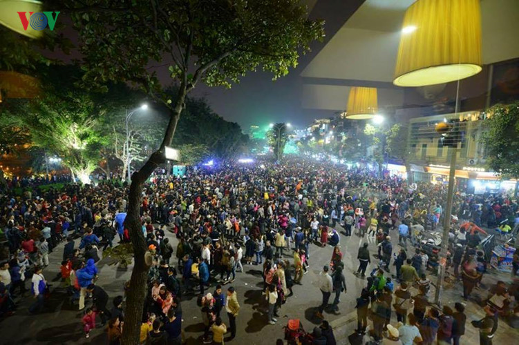 Tại Nội, hàng vạn người dân và du khách quốc tế đã có mặt tại bờ hồ Hoàn Kiếm, quảng trường Cách mạng Tháng Tám để tham dự chương trình nghệ thuật đếm ngược thời gian.