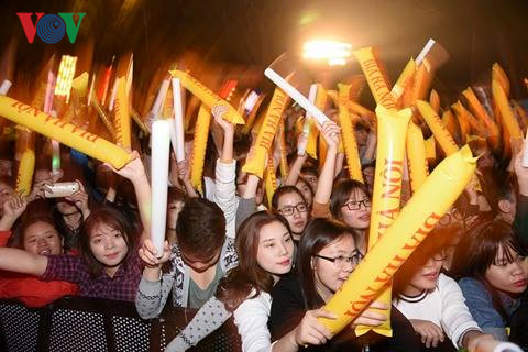 | Nhiều bạn trẻ cuồng nhiệt với các tiết mục sôi động trong lễ hội âm nhạc đếm ngược "Bia Hà Nội Countdown Party 2017" trước cổng công viên Thống Nhất bên Hồ Thiền Quang, Hà Nội. Ảnh: Vũ Toàn |