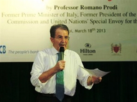 | Giáo sư Romano Prodi tại buổi thuyết trình |
