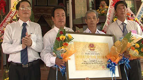 | Trao bằng công nhận Di tích lịch sử văn hóa cấp tỉnh đối với ngôi nhà mẹ Việt Nam Anh hùng Nguyễn Thị Thứ. |