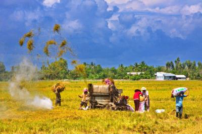 | Nông dân quận Ô Môn (Cần Thơ) thu hoạch lúa. Ảnh: Duy Khương – TTXVN |