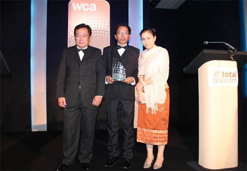 | Đại diện Unitel nhận giải WCA 2012 (Ảnh: dddn.com.vn) |
