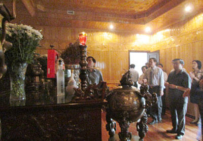 | Các đại biểu dâng hương tại Phòng thờ Bác Hồ. (Ảnh: BLC) |