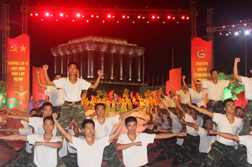 (VOV5) - Chương trình giao lưu nghệ thuật, dạ hội thanh niên với chủ đề “Niềm tin Việt Nam, sức mạnh Việt Nam”, chào mừng kỷ niệm 70 năm Cách mạng Tháng Tám và Quốc khánh 2/9, diễn ra tối 22/8, tại quảng trường Ba Đình, Hà Nội.