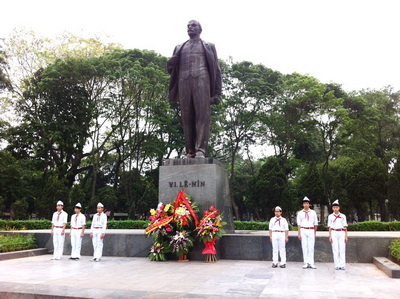 Cũng trong sáng nay, tại Hà Nội, Phó Bí thư Thường trực Thành ủy Hà Nội Nguyễn Công Soái dẫn đầu đoàn đại biểu Thành ủy, Hội đồng nhân dân, Ủy ban nhân dân, Ủy ban Mặt trận Tổ quốc thành phố Hà Nội tới đặt lẵng hoa tại Tượng đài V.I.Lênin, lãnh tụ vĩ đại của Cách mạng tháng 10 Nga./.