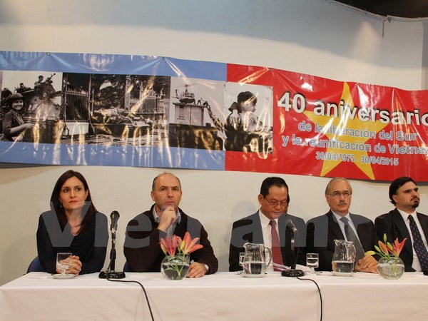 Trong không khí tưng bừng của cả nước chào mừng 40 năm ngày giải phóng miền Nam, thống nhất đất nước (30/4/1975-30/4/2015), hôm qua, 28/4, tại trụ sở Hạ viện Argentina ở thủ đô Buenos Aires diễn ra lễ kỷ niệm sự kiện lịch sử trọng đại này, với sự tham gia của đại diện Bộ Ngoại giao và Quốc hội Argentina, Viện văn hóa Argentina – Việt Nam, đại sứ các nước Nga, Ấn Độ, Malaysia, Indonesia, Philippines và Nicaragua.