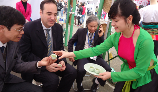 | Sinh viên ĐHHN mời trà khách tham dự ngày hội Pháp ngữ 2012 (Ảnh: kienthucgiadinh.com.vn) |