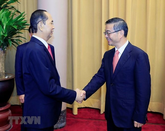 Chiều 19/9/2018, tại Phủ Chủ tịch, Chủ tịch nước Trần Đại Quang tiếp đồng chí Chu Cường, Chánh án Toà án nhân dân Tối cao Trung Quốc đang có chuyến thăm và làm việc tại Việt Nam. (Ảnh: TTXVN)
