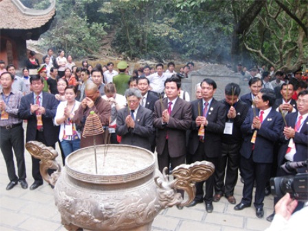 | Các đại biểu dâng hương tại Đền Hùng |